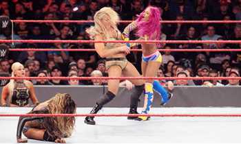 ولم تخلو المباراة من شد وجذب بين تشارلوت وساشا بانكس، على من انضمام كلاهما لفريق "راو"، بسبب امتلاك كلا منهما لضغينة تجاه الأخرى، بسبب صراعهما على "بطولة WWE للسيدات".