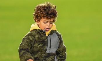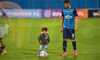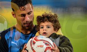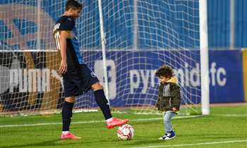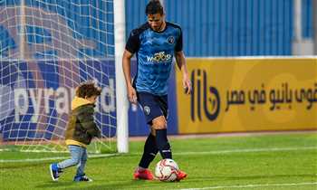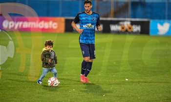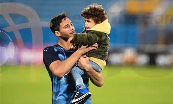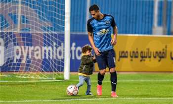 رمضان صبحي ونجله يداعبان الكرة بعد مباراة بيراميدز وإيسترن كومباني