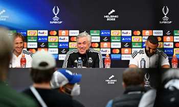 ابتسامة أنشيلوتي في أبرز صور مران ومؤتمر ريال مدريد للسوبر الأوروبي