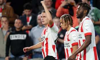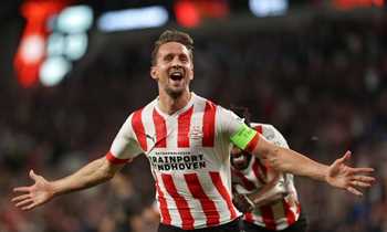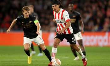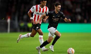 فرحة لاعبي أيندهوفن بالفوز أمام أرسنال في الدوري الأوروبي