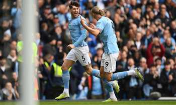 ثنائية هالاند وصاروخية ستونز في أبرز صور مباراة مانشستر سيتي وليستر
