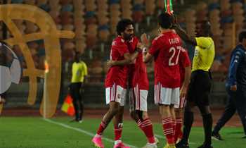 احتفال عمر كمال وعبد القادر في أبرز صور مباراة الأهلي وإيجل نوار