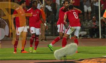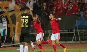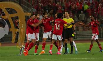 احتفال عمر كمال وعبد القادر في أبرز صور مباراة الأهلي وإيجل نوار
