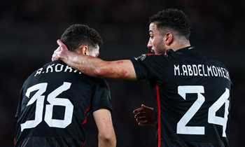 احتفال عمر كمال وعبد القادر في أبرز صور مباراة الأهلي وإيجل نوار