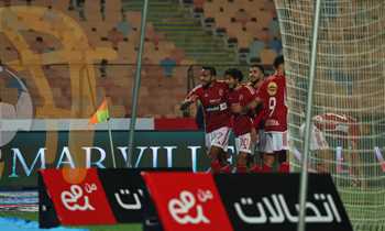 احتفال عمر كمال وعبد القادر في أبرز صور مباراة الأهلي وإيجل نوار
