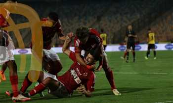 احتفال عمر كمال وعبد القادر في أبرز صور مباراة الأهلي وإيجل نوار