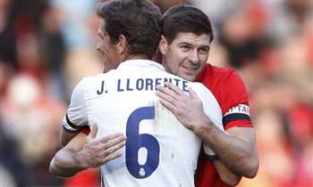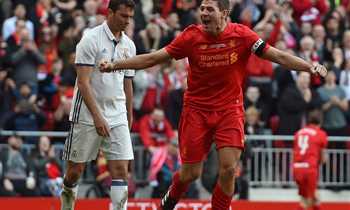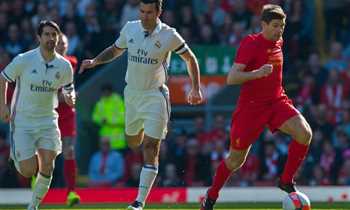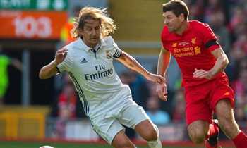 جيرارد بقميص ريال مدريد وسيدورف بقميص ليفربول في لقاء الأساطير