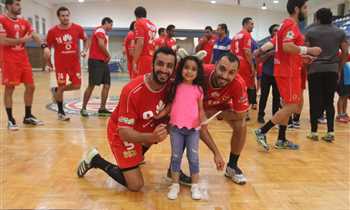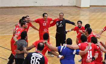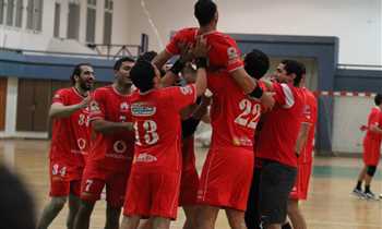 احتفال لاعبي الأهلي بحسم دوري اليد