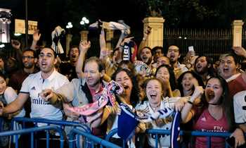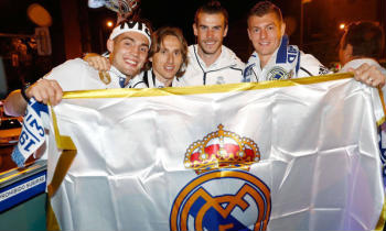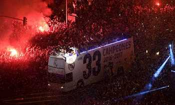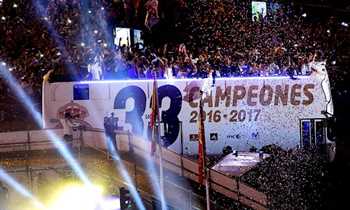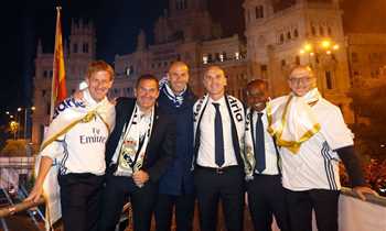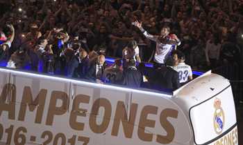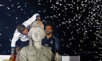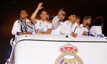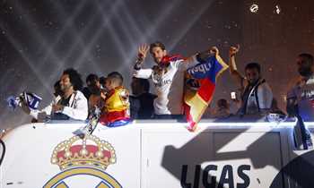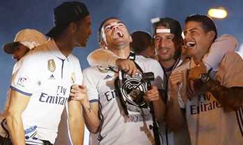 احتفال لاعبي ريال مدريد مع الجماهير بالليجا في سيبيليس