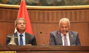 محمود طاهر رئيس الأهلي يناقش اللائحة الاسترشادية لقانون الرياضة مع وزير الرياضة في مجلس الشعب