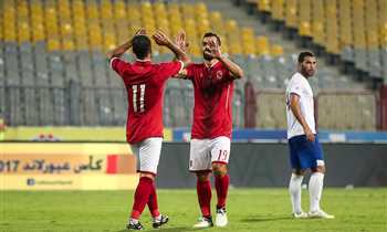 احتفال عمر كمال وعبد القادر في أبرز صور مباراة الأهلي وإيجل نوار