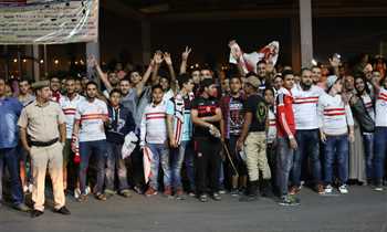 مئات من جماهير الزمالك يستقبلون بعثة الفريق في المنصورة استعدادا لمباراة طنطا