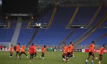 صور من المران الأخير لبرشلونة وروما قبل المواجهة المرتبقة بينهما