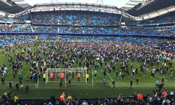 اقتحام جماهير مانشستر سيتي لأرض الملعب احتفالا بالدوري