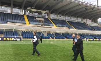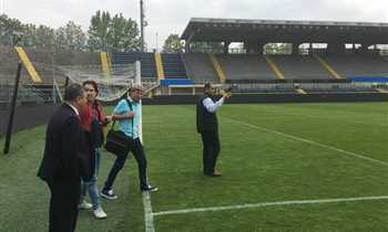 الجهاز الفني للمنتخب في ملعب مباراة كولومبيا