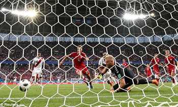 ركلة جزاء ضائعة واحتفال رائع في أبرز صور فوز الدنمارك على بيرو