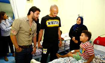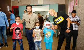 زيارة أحمد حسن وحمادة طلبة لمستشفى أبو الريش للأطفال