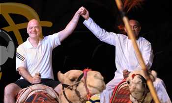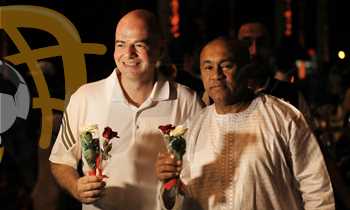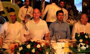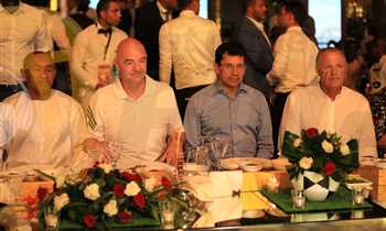 أبو ريدة يستقبل أحمد وإنفانتينو على الجمال في حفل الجمعية العمومية للكاف