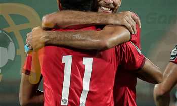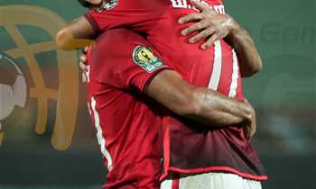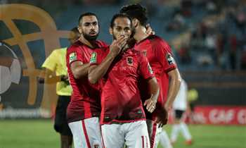 احتفال عمر كمال وعبد القادر في أبرز صور مباراة الأهلي وإيجل نوار