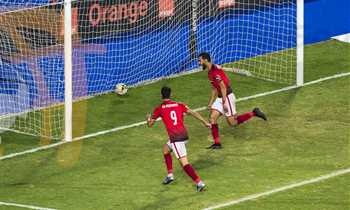 احتفال عمر كمال وعبد القادر في أبرز صور مباراة الأهلي وإيجل نوار