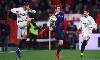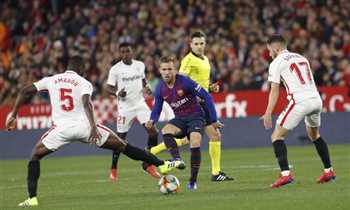 سقوط شرس في أبرز صور هزيمة برشلونة أمام إشبيلية