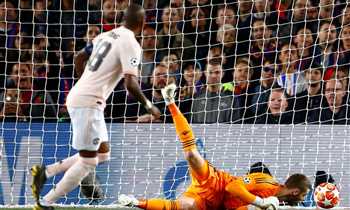 الطائر ميسي وحسرة دي خيا في صور انتصار برشلونة على مانشستر يونايتد