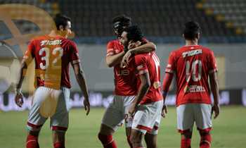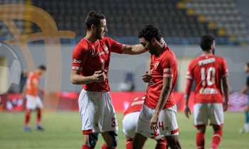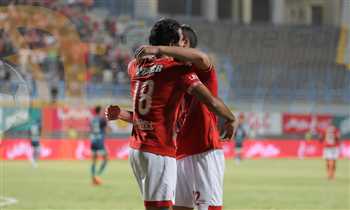 احتفال عمر كمال وعبد القادر في أبرز صور مباراة الأهلي وإيجل نوار