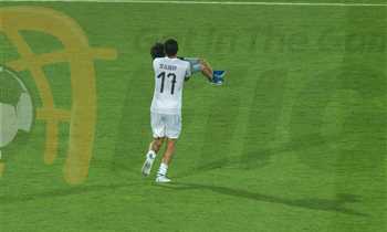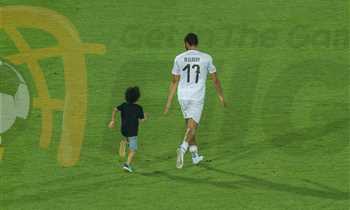 النني يحتفل مع نجله بفوز مصر على أوغندا