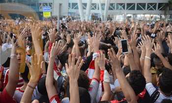 استقبال جمهور الزمالك لأبطال فريق اليد في مطار القاهرة
