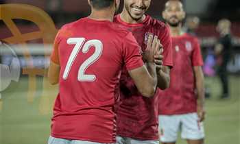 احتفال عمر كمال وعبد القادر في أبرز صور مباراة الأهلي وإيجل نوار