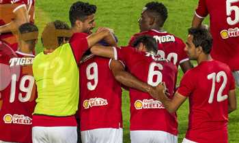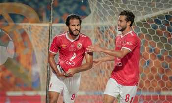 احتفال عمر كمال وعبد القادر في أبرز صور مباراة الأهلي وإيجل نوار