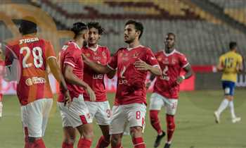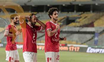 احتفال عمر كمال وعبد القادر في أبرز صور مباراة الأهلي وإيجل نوار