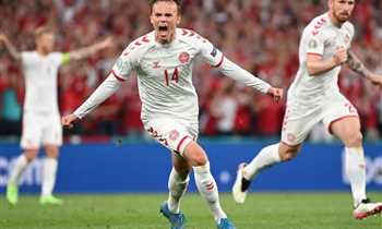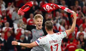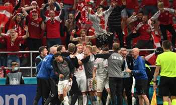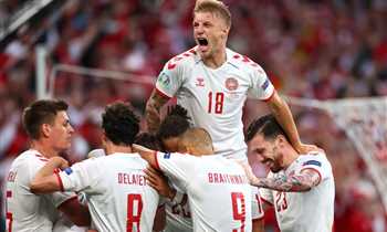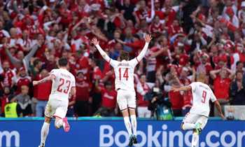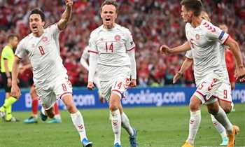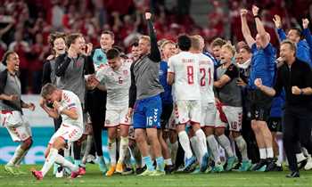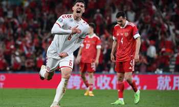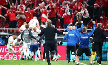 صرخة قوية واحتفالات رائعة في صور انتصار الدنمارك الرباعي على روسيا