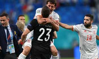 سومر وسيمون الرائعان في صور انتصار إسبانيا على سويسرا
