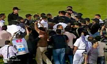 وشهدت المباراة أيضا اطلاق صواريخ وألعاب نارية ومحاولة من قبل الجماهير الصربية لغزو الملعب.