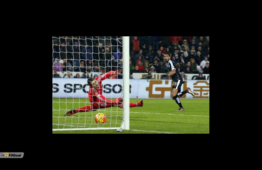 وعاد محرز لزيارة شباك سوانزي من جديد بعد جملة جماعية بين نجولو الذي مرر لجيمي فاردي داخل منطقة الجزاء الذي آثر التمرير لمحرز الذي لم يتوانى في تسديد الكرة بيمناه قوية في شباك فابيانسكي.