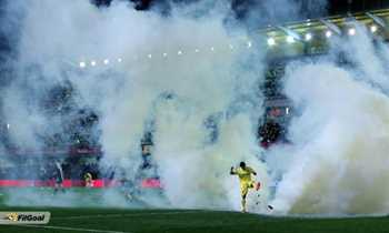 أما لاعبي الأهلي فجروا سريعا إلى غرف الملابس وتلاحقهم شتائم وقذف ما باليد من الجمهور عليهم حزنا لضياع بطولة الدوري للسنة الثالثة .