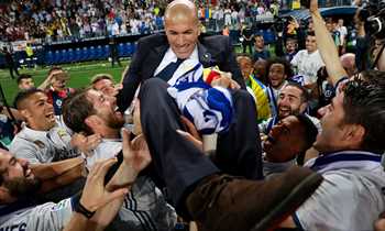 اقتحم لاعبو ريال مدريد مؤتمر مدربهم زين الدين زيدان عقب نهاية مباراة مالاجا والتتويج بلقب الدوري الإسباني يوم الأحد.