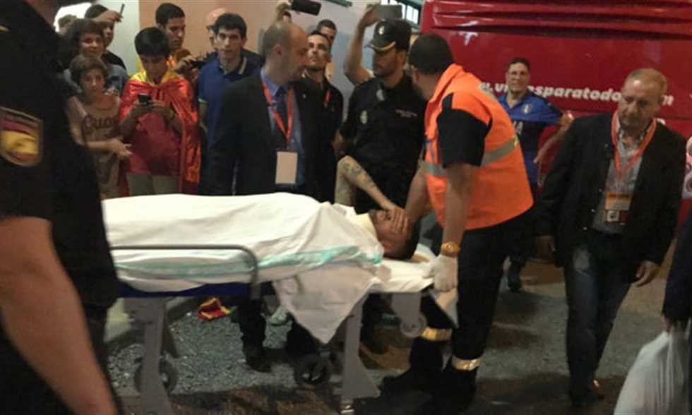 سيبايوس تلقى ضربة في الرقبة في الدقيقة 34 فقد على إثرها الوعي، لينتقل إلى المستشفي لإجراء فحوصات شاملة.