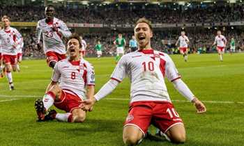يوسف بولسن تقدم للدنمارك في النتيجة بالدقيقة 71، وبعد 3 دقائق فقط، أضاف كريستيان إريكسن الهدف الثاني.