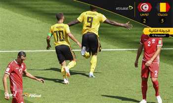 منتخب بلجيكا انتصر بخماسية مقابل هدفين على منتخب تونس في الجولة الثانية من المجموعة السابعة في كأس العالم. (طالع التفاصيل)