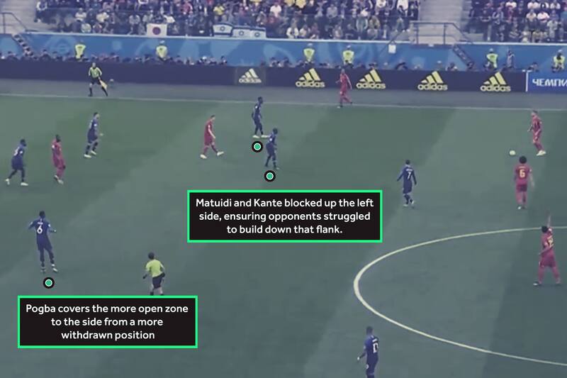 سينقسم الملعب في لقاء فرنسا وكرواتيا إلى جزئين، الأول في الناحية اليمنى بواقع 3 مربعات والتي سيتواجد فيها كل من بليز ماتويدي ولوكاس هيرنانديز ونجولو كانتي أمام لوكا مودريتش وسيمي فرسالجكو.