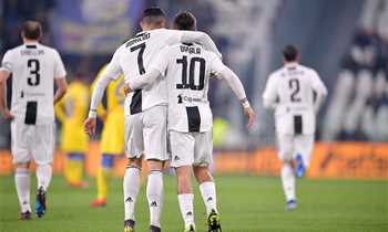 لاعبو يوفنتوس يحتفلون بهدف رونالدو الثاني في أتليتكو مدريد