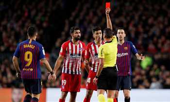 ثار دييجو كوستا غاضبا فور أن رأت عينه لون البطاقة الحمراء التي أشهرَت في وجهه خلال مباراة فريقه أتليتكو مدريد أمام برشلونة.