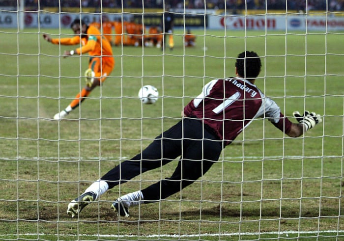 هنا اختلف السيناريو. بيير وومي أهدر ركلة الجزاء أمام عصام الحضري بعد أن حاول الحضري التلاعب بأعصابه قبل التنفيذ، ثم سددها في القائم الأيسر لينتهي اللقاء بالتعادل وتتأهل كوت ديفوار إلى كأس العالم.