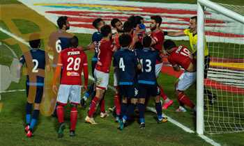 بعدها زادت المناوشات والتدخلات القوية على أرض الملعب، واعترض لاعبو الأهلي بشدة على جهاد جريشة مطالبين بركلة جزاء بداعي لمسة يد.