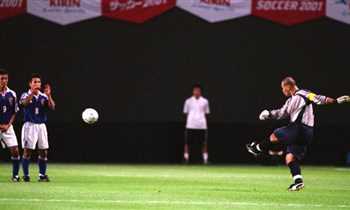 عاد هيجيتا من جديد ليرتدي قميص منتخب بلاده وفي عام 1995 ومن تسديدة لجيمي ريدناب في الدقيقة 28 ظهر "تصدي العقرب".