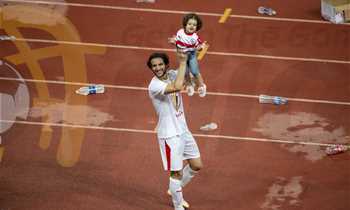 لاعبو الزمالك يحتفلون بهدف أشرف بنشرقي في الترجي