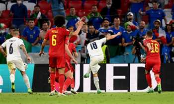 سجلت إيطاليا مرتين قبل أن تقلق بلجيكا الفارق من ركلة جزاء لينتهي الشوط المثير بنتيجة 2-1.