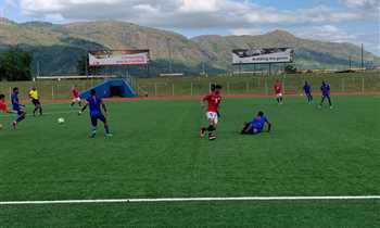 منتخب مصر الأولمبي بالزي الأحمر وإسواتيني بالأزرق
